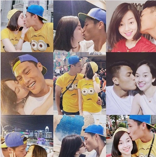 | Hòa Minzy - Công Phượng: Chuyện tình cảm của cặp đôi này cũng tiêu tốn không ít giấy mực của giới truyền thông, đặc biệt là khi cả 2 chưa từng thẳng thắn thừa nhận đang hẹn hò. Đầu năm 2015, Hòa Minzy đăng ảnh khóa môi bạn trai trên Instagram. Đây được coi là động thái ngầm công khai chuyện yêu của nữ ca sĩ. Ảnh: Vietnamnet |
