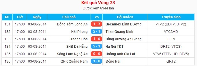 Trong khi đó, Hà Nội T&T để thua 1-2 trước Đà Nẵng dù dẫn trước từ hiệp 1 sau pha ghi bàn của Hector. Sang hiệp 2, Đà Nẵng nhanh chóng ghi liền 2 bàn trong 20 phút đầu để dẫn lại đội bóng thủ đô.