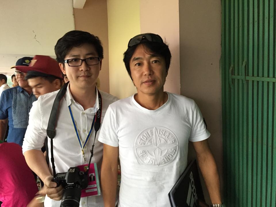 | HLV Miura thân thiện chụp ảnh cùng người hâm mộ Đồng Tháp. |