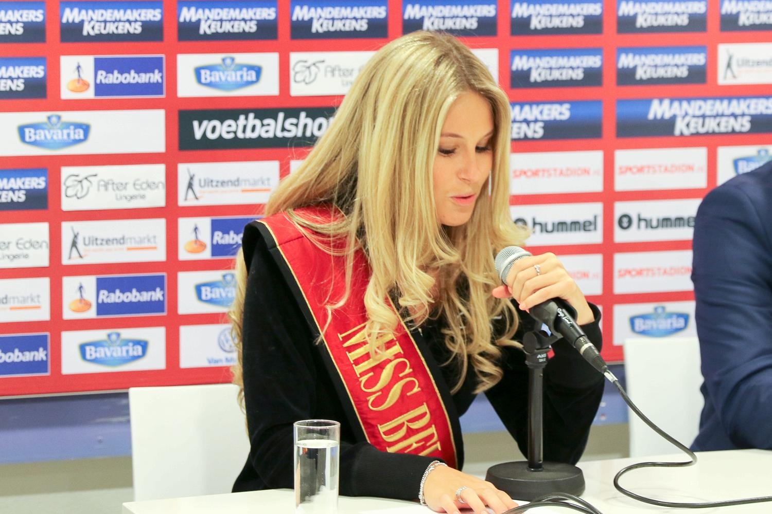 | Hoa hậu Bỉ Lenty Frans cũng tham gia trận đấu với tư cách đại sứ. |