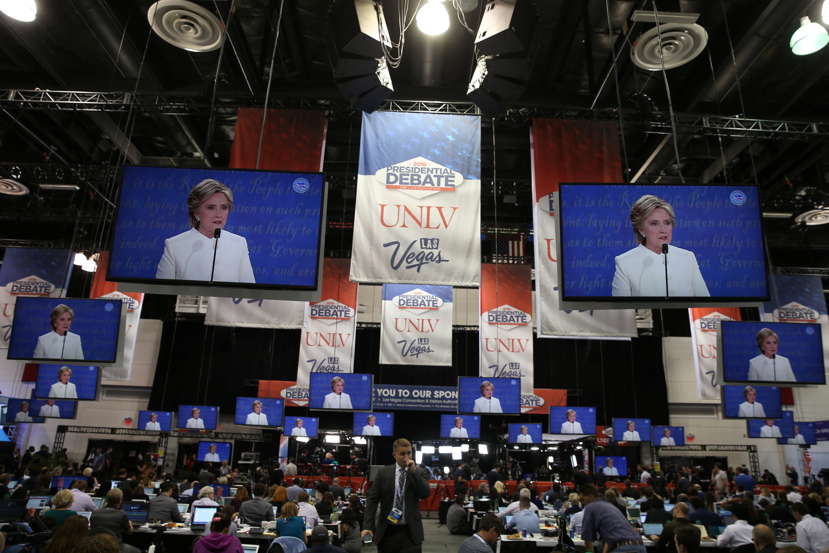 Các nhà báo theo dõi màn tranh luận đầy căng thẳng ở Las Vegas.