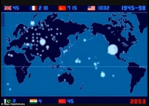 Cứ như vậy, mỗi khi một vụ thử diễn ra là có một đốm sáng xuất hiện. Đoạn video đã ghi lại tổng cộng 2053 vụ thử hạt nhân trên toàn thế giới, trong đó Mỹ thực hiện 1032 lần, trong khi Anh thực hiện 24 lần.
