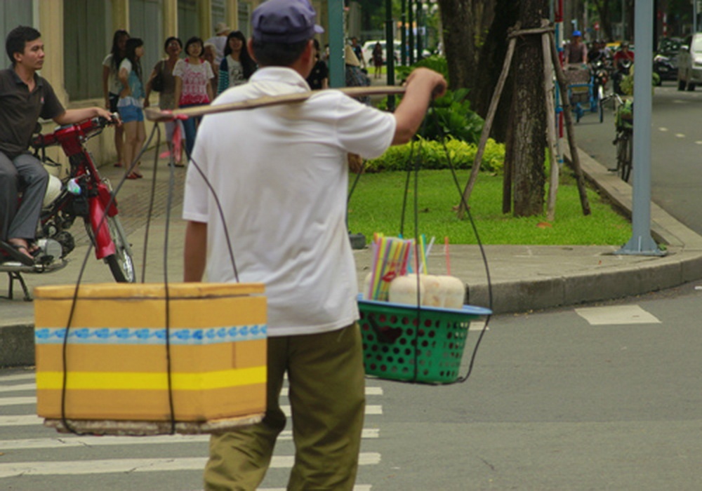 | Bán dừa làm phiền du khách tại Sài Gòn. |