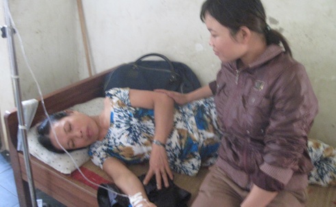 | Bà Nguyễn Thị Thọ điều trị tại bệnh viện sau khi bị té do đu dây qua sông. |