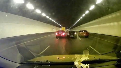 Cuộc đua giữa hai chiếc xe Hyundai và Mercedes-Benz trong đường hầm đã suýt gây ra tai nạn.