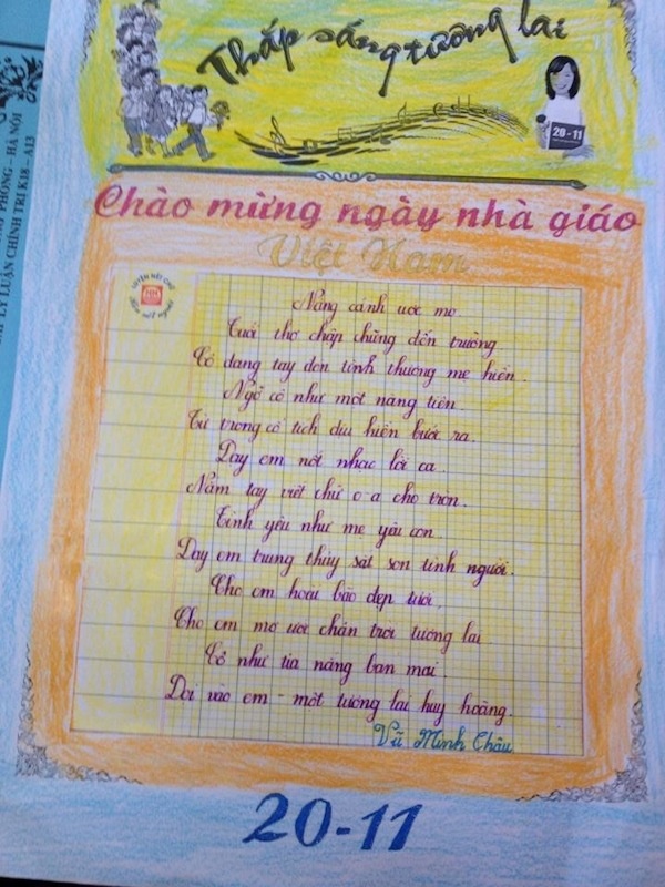 Bài thơ này được Châu tự sáng tác và trình bày trong chương trình làm báo tường của trường tiểu học Lê Văn Tám nhân ngày Nhà giáo Việt Nam 20/1.