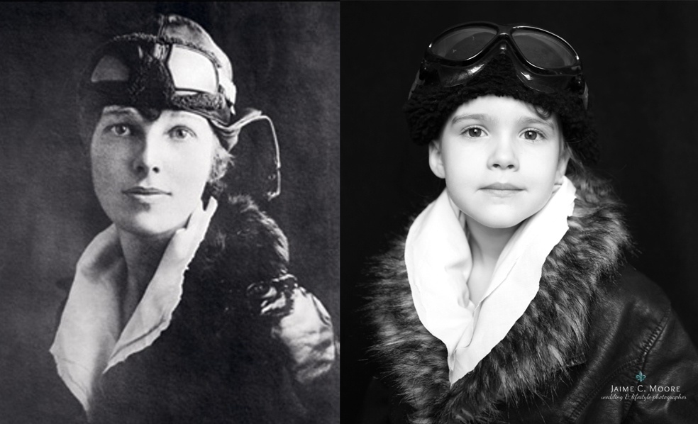| Theo Designmom "Not Just A Girl" - là món quà ý nghĩa nữ nhiếp ảnh gia Jamie Moore dành cho Emma - cô con gái cưng trong sinh nhật lần thứ 5. Bà thực hiện bộ ảnh này với mong muốn, mai này cô bé lớn lên cũng sẽ trở nên thật tài giỏi, nổi tiếng như những người phụ nữ lịch sử. Jamie Moore đã hóa trang cho con gái thành nữ phi công Amelia Earhart - người đầu tiên bay một mình qua Đại Tây Dương. |
