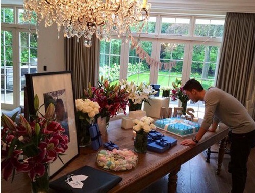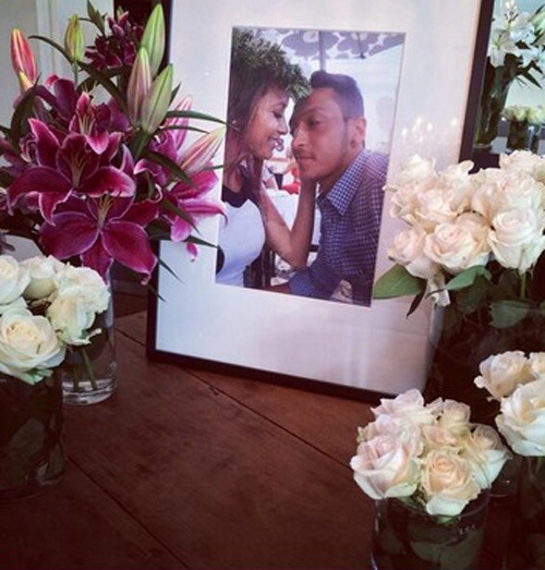 | Tấm hình tình cảm của cặp đôi được phóng to và bày trang trọng trong sinh nhật của Oezil. |