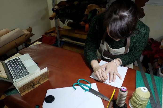 | Công việc làm đồ da không dễ dàng, nhưng Hạnh Chi luôn cho đó là niềm hạnh phúc. Ảnh: NVCC. |