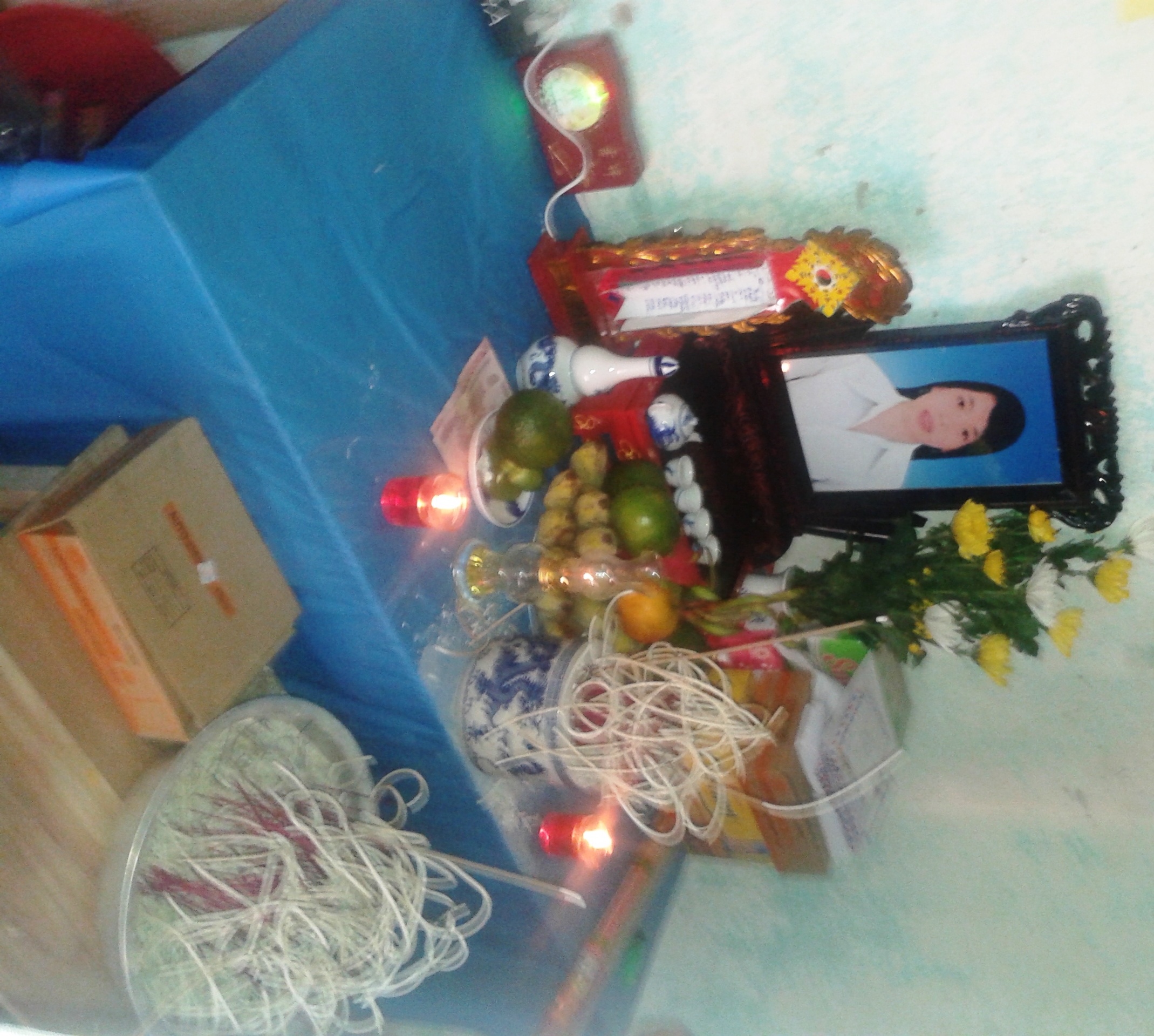 | Bàn thờ và di ảnh của chị Mai. Ảnh: Nam An. |