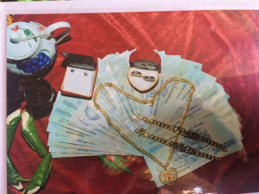 Khi xảy ra sự việc, nhà gái đã mang số nữ trang gồm đôi bông tai hột xoàn, dây chuyền + mặt vàng 24K (5 chỉ), lắc đeo tay vàng 24K (4 chỉ), cặp nhẫn cưới vàng 18K (2,5 chỉ) và 20 triệu đồng mà nhà trai tặng cho con dâu tương lai trả lại.