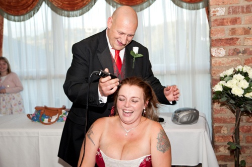 Hầu hết các cô dâu đều lo lắng về mái tóc của mình trước lễ cưới, bởi họ mong muốn sẽ tạo được kiểu tóc đẹp nhất trong ngày trọng đại nhất đời. Roxy Greaves thì ngược lại, cô chọn cách cạo trọc đầu để khuyên góp từ thiện cho các bệnh nhân ung thư.