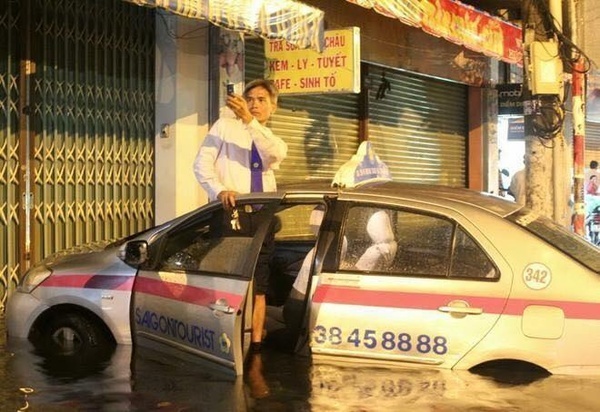 | Tình trạng lụt nặng vẫn diễn ra tại nhiều tuyến đường ở TP HCM sau cơn mưa lớn chiều 15/9. Trong ảnh, chiếc taxi ngập trong biển nước, tài xế dùng điện thoại di động chụp lại khung cảnh xung quanh. Khoảnh khắc này hút 20.000 lượt xem. Nhiều bình luận cho rằng, đây là hình ảnh "cười ra nước mắt" tại TP HCM. Ảnh: Anh Tuấn chia sẻ. |