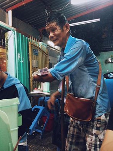 | Câu chuyện về cuộc gặp gỡ tình cờ giữa một nam thanh niên và người đàn ông bán vé số tật nguyền do Le Van chia sẻ thu hút hơn 18.000 lượt xem. Theo đó, dù được từ chối nhận lại tiền thối, người đàn ông bán vé số vẫn nhất quyết không nhận. Thấy vậy, chàng trai trú mưa gần đó gọi ông vào ăn. Họ ngồi chung bàn, vừa ăn vừa tâm sự nhiều điều trong cuộc sống. Ảnh: Le Van. |