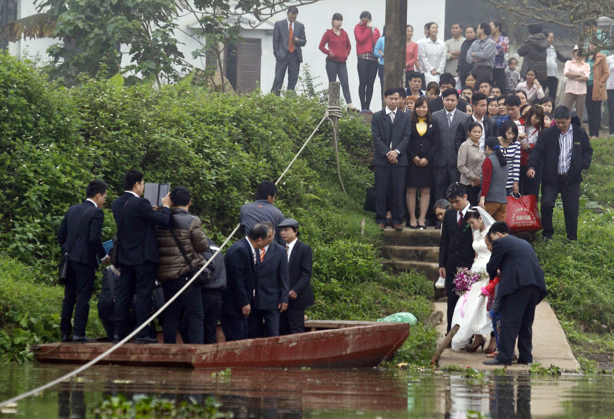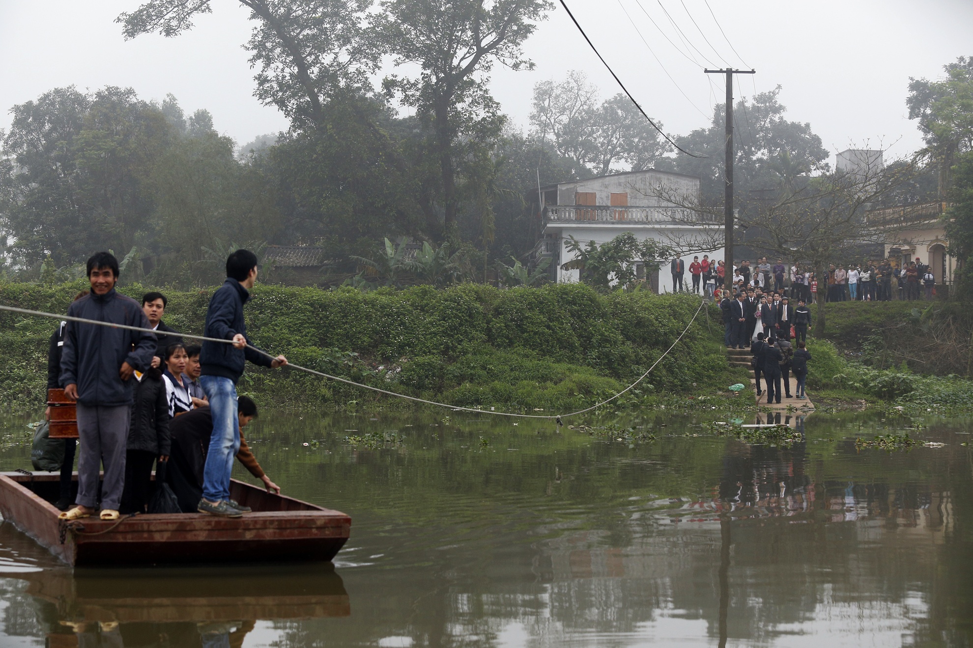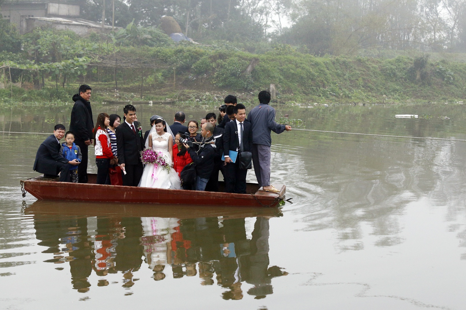 | Sáng 25/3, làng Ngọc Liễu có một lễ cưới. Cô dâu buộc phải lên đò qua sông về nhà chồng ở Phú Thọ. |
