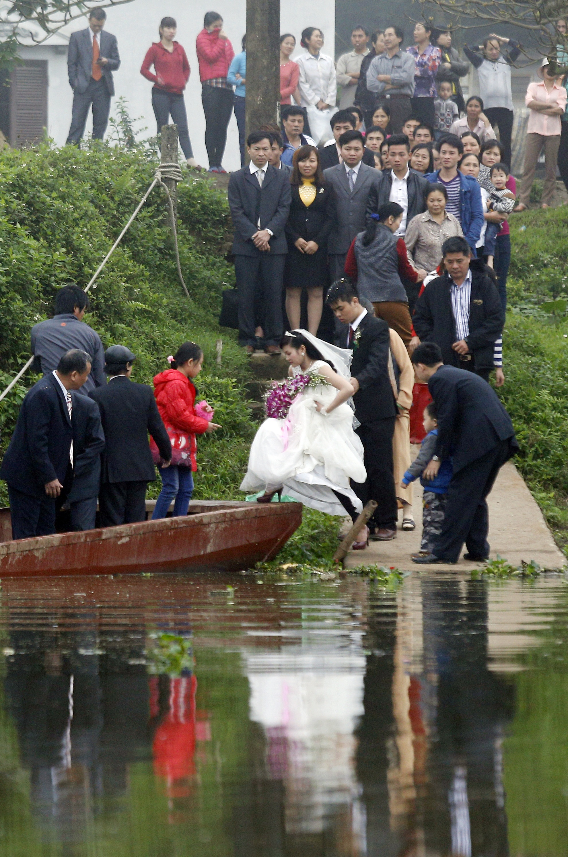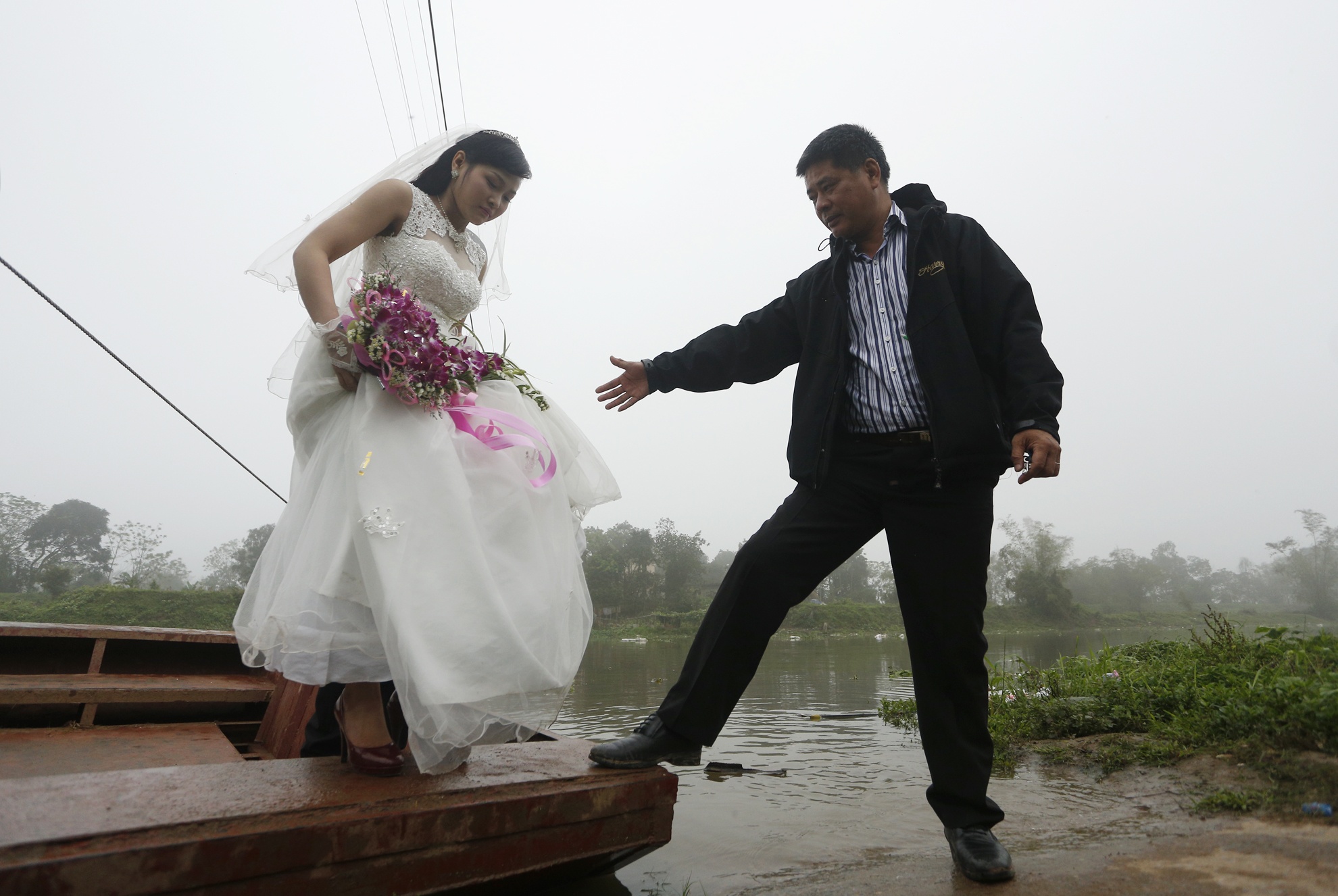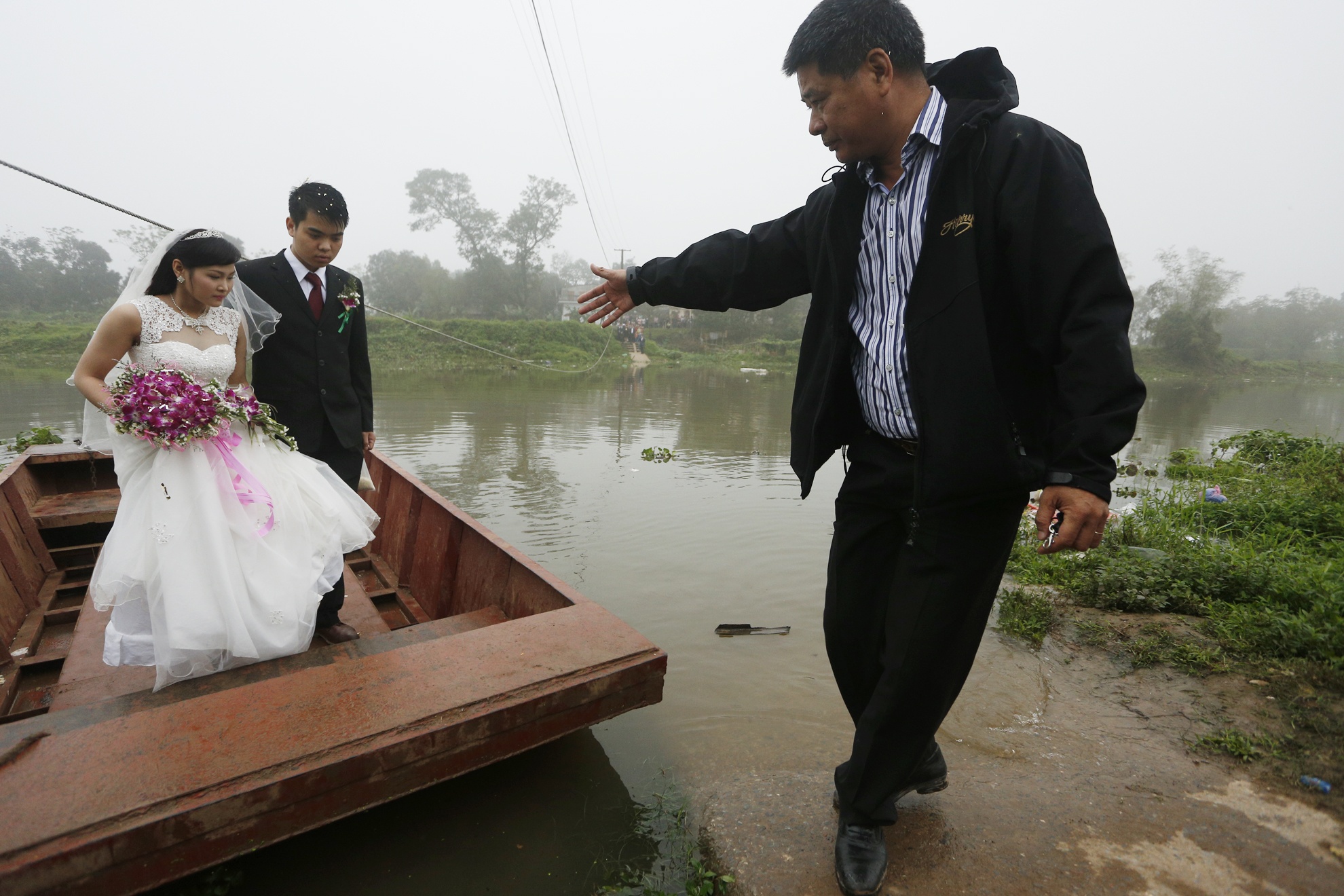 | Sáng 25/3, làng Ngọc Liễu có một lễ cưới. Cô dâu buộc phải lên đò qua sông về nhà chồng ở Phú Thọ. |