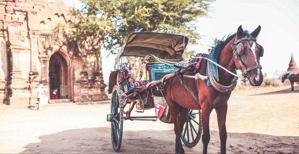 Đến Bagan, bạn có thể đi bộ, xe đạp hay xe ngựa, thong dong trên các con đường mòn đất đỏ ngắm nhìn những quần thể đền, chùa chiền và tu viện giữa khoảng trời bao la.