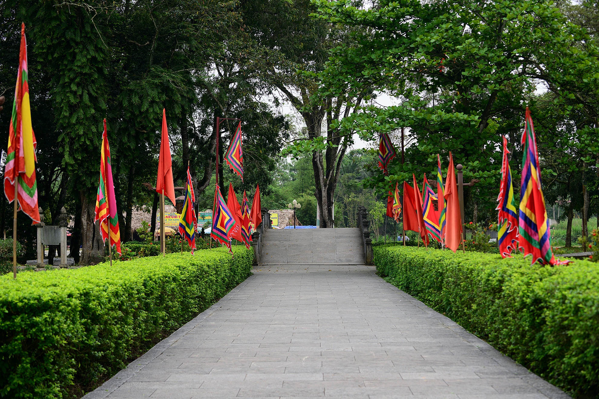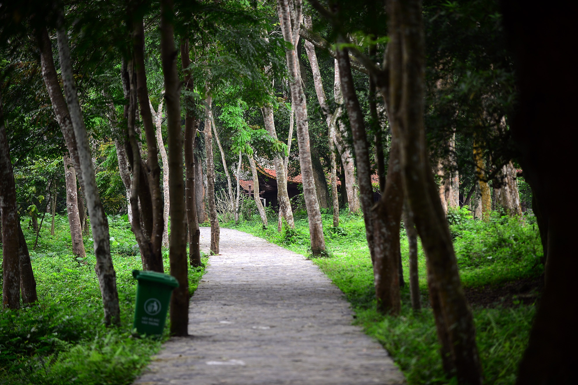 Con đường xanh mát với cây cối xum xuê dẫn vào cổng Ngọ môn.