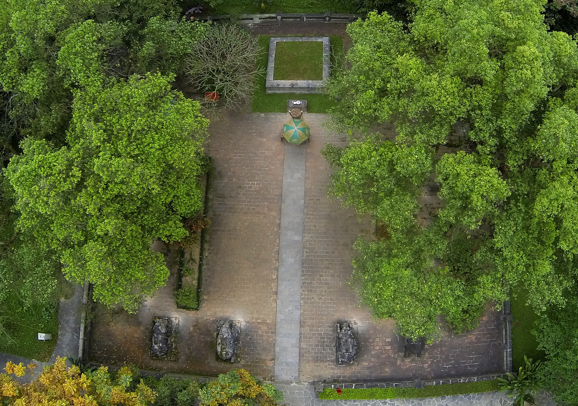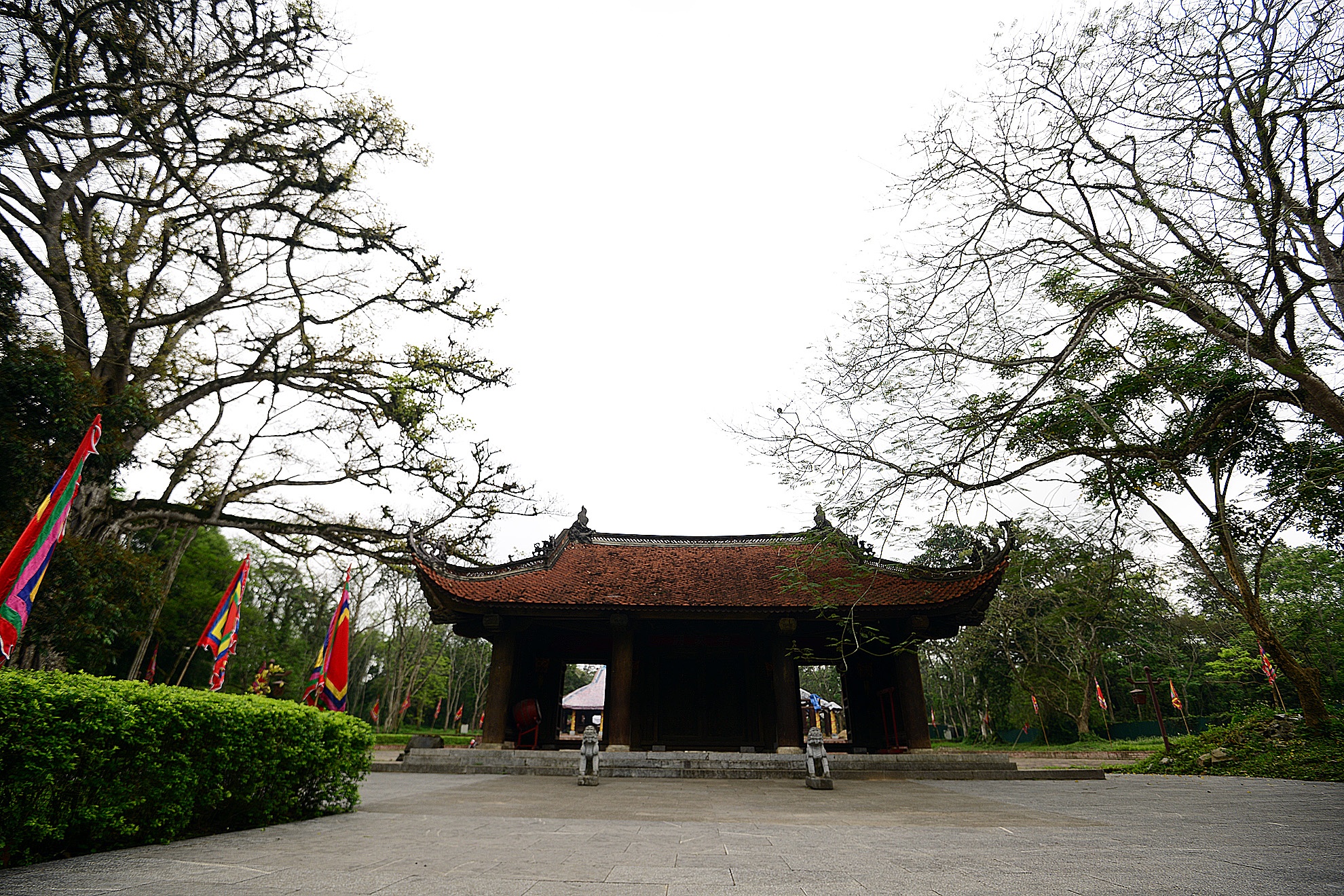 | Từ cổng Ngọ môn, du khách thấy sân rồng rộng gần 4.000 m2. Bên phải là cây đa thị đã cóhàng trăm năm, vươn mình tỏa bóng mát. |