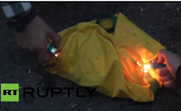 | Chiếc áo đấu từng được coi là biểu tượng của Brazil bị cổ động viên đem đốt. |