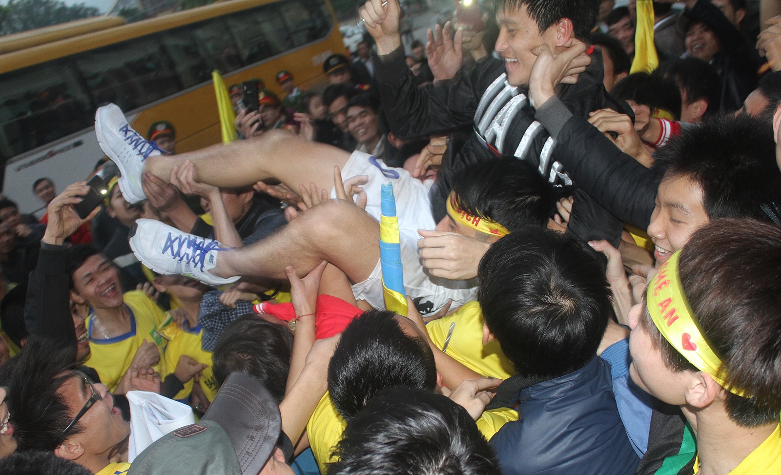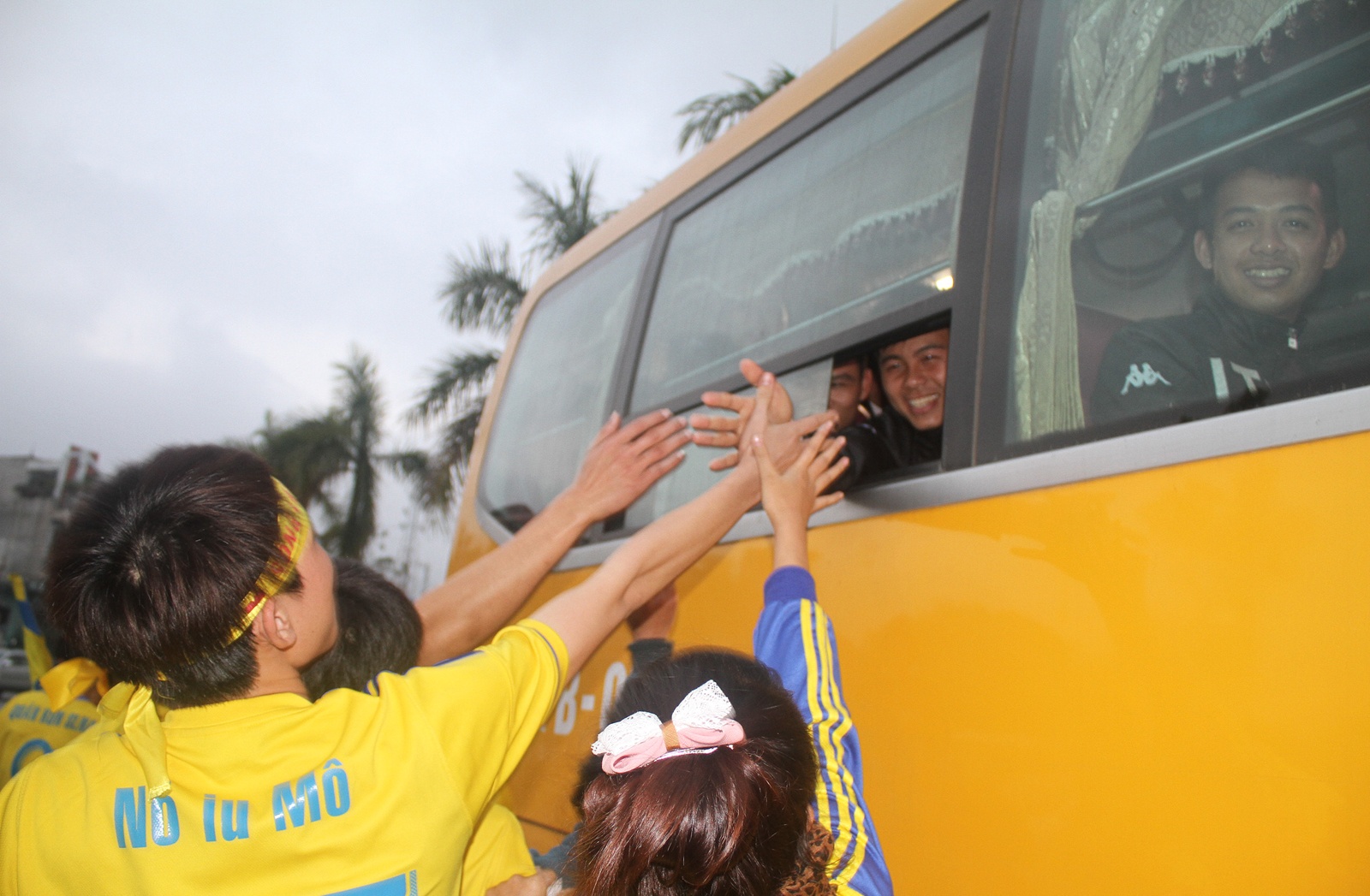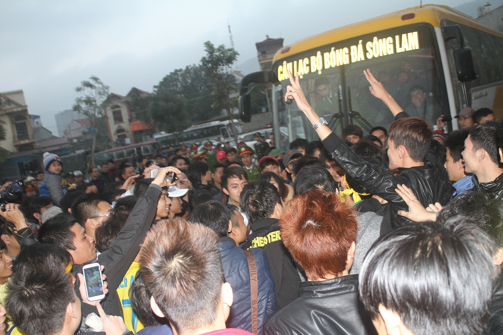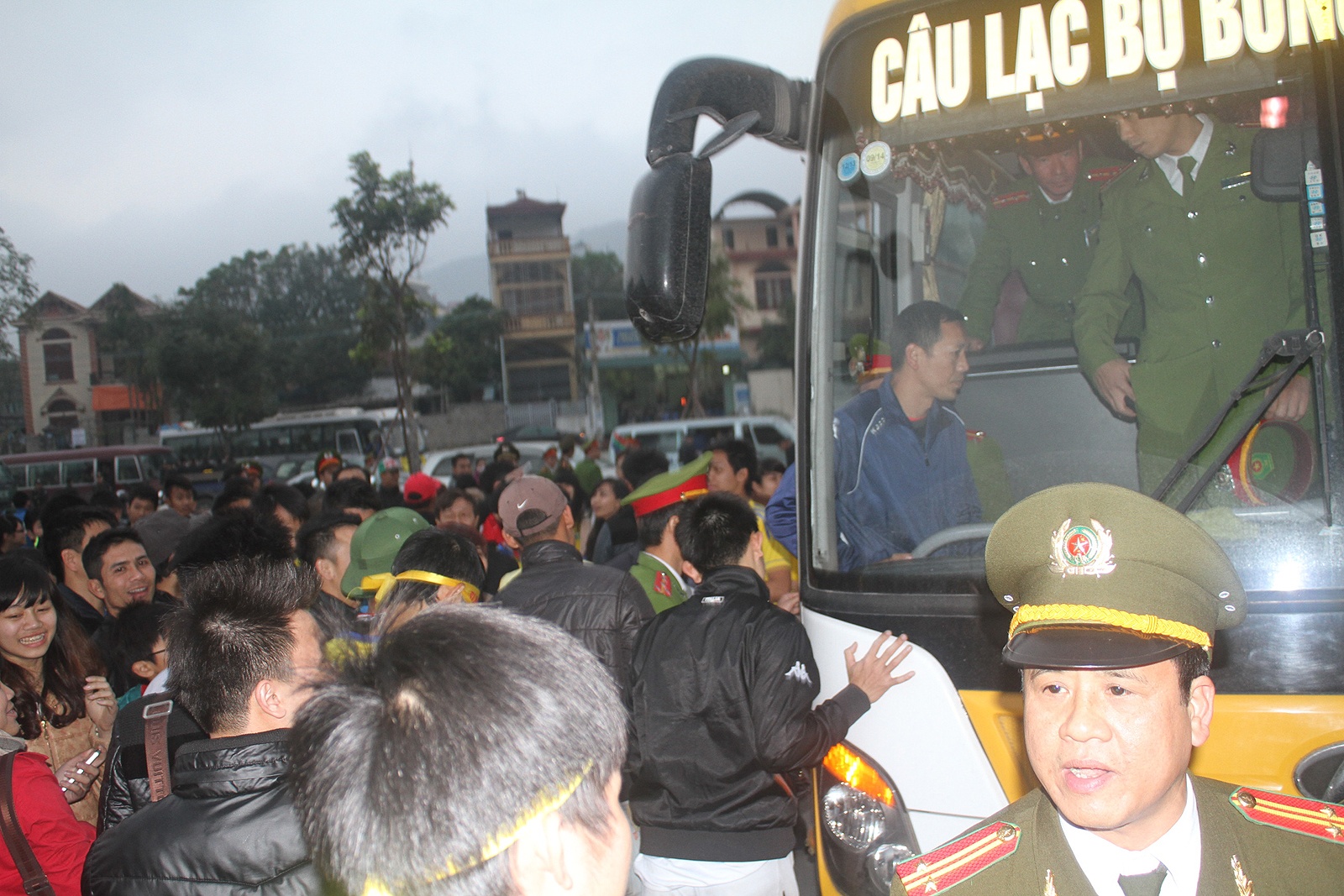 Do CĐV quây kín Công Vinh nên phải nhờ tới lực lượng an ninh hỗ trợ, chân sút người xứ Nghệ mới có thể lên xe cùng toàn đội về khách sạn.