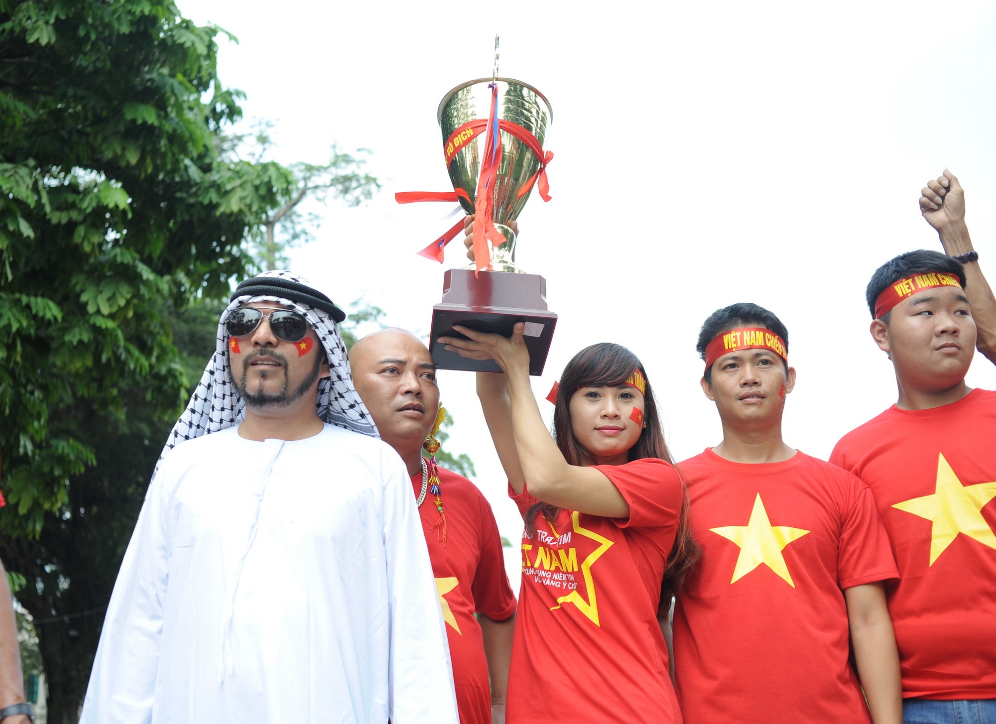 | Chiếc Cup tượng trưng chức vô địch tối nay cho U19 Việt Nam của CĐV có biệt danh Quê "Râu" (hay Quê "Ả Rập"). |