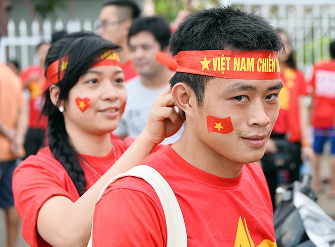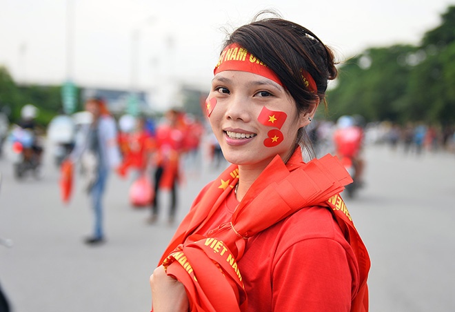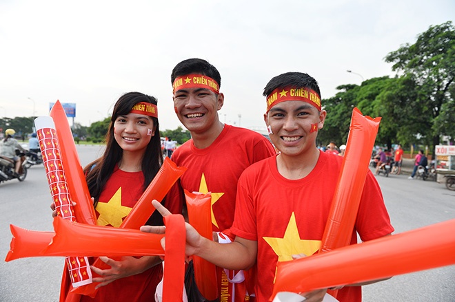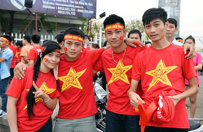 Hầu hết các cổ động viên Việt Nam khi đến sân Mỹ Đình cổ vũ đội tuyển U19 đều chọn màu áo Tổ quốc để thể hiện tình yêu với bóng đá nước nhà.