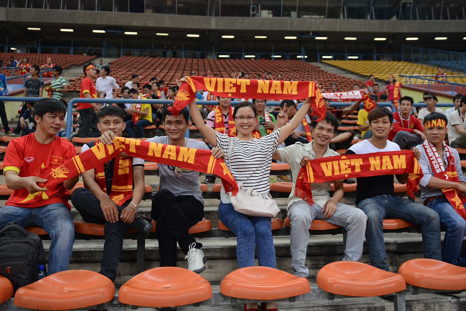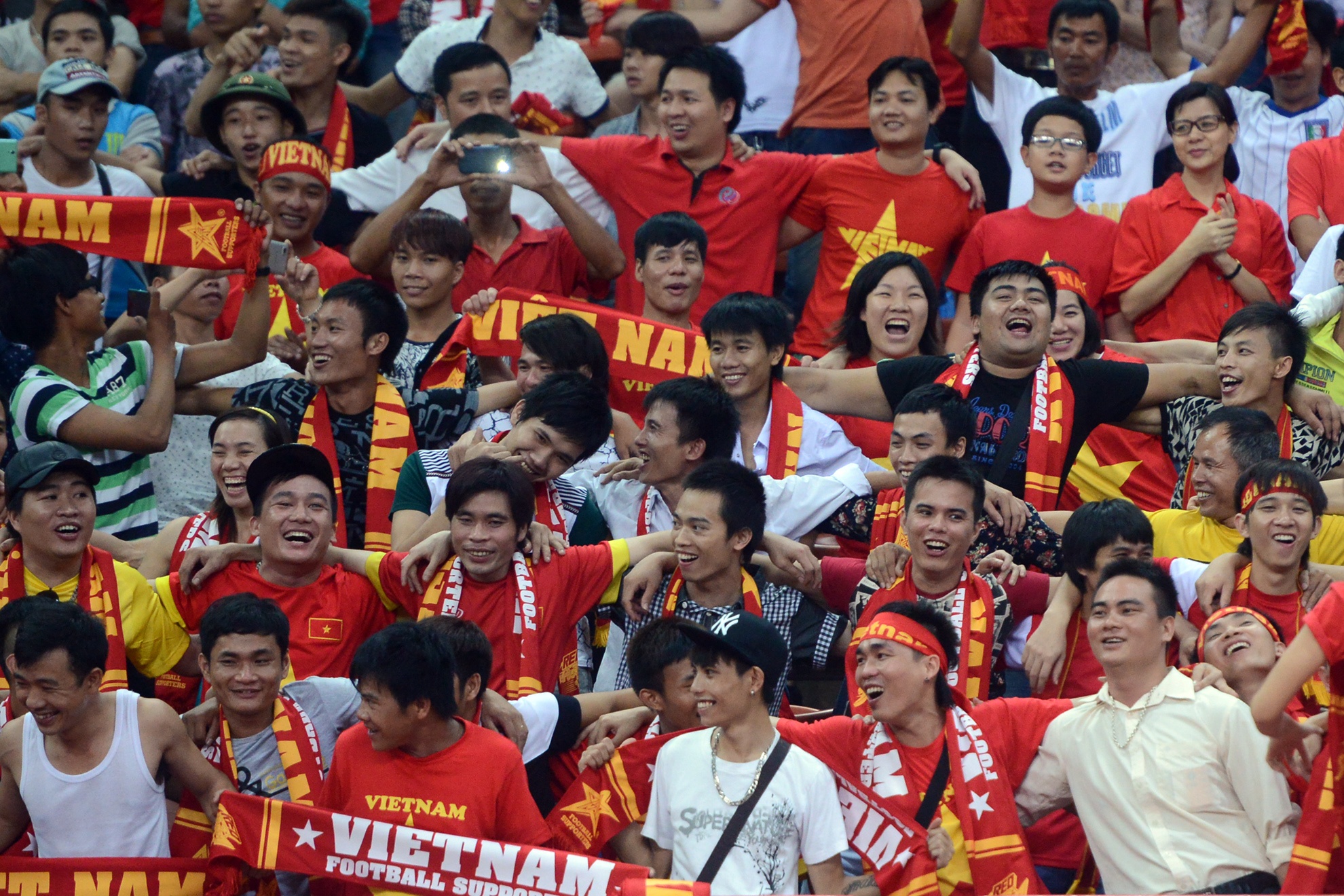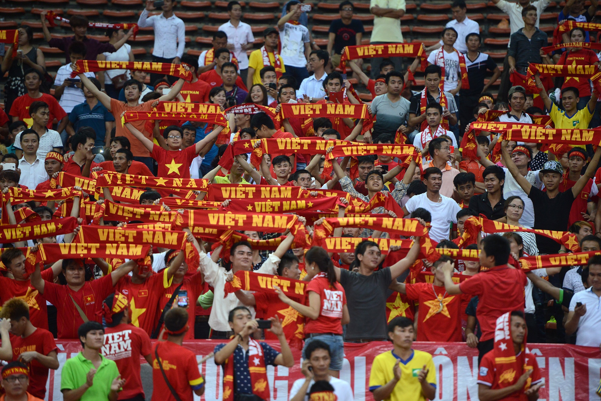 | Sự cố cổ động viên Việt bị đánh trên khán đài tại trận bán kết AFF Cup tháng 11/2014 không làm giảm đi nhiệt huyết của người hâm mộ tới sân. Trận đấu vòng loại AFC lần này, các khán giả Việt Nam được xếp ngồi tại góc phải khán đài A, tách biệt hoàn toàn với cổ động viên Malaysia ở khán đài B.