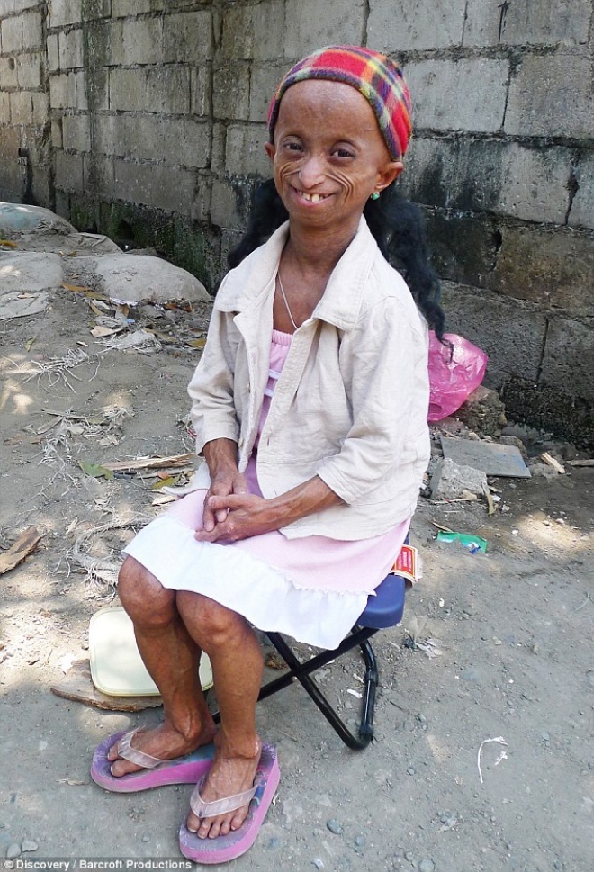 Theo Daily Mail, Ana Rochelle Pondare (18 tuổi, người Philippines) được chẩn đoán mắc chứng thoái hoá sớm từ khi 5 tuổi. Vì chứng bệnh quái ác, cô trông giống một bà lão trăm tuổi.