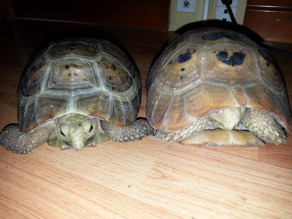 | 2 con rùa Núi Vàng nằm trên góc học tập của Nhật Minh. |