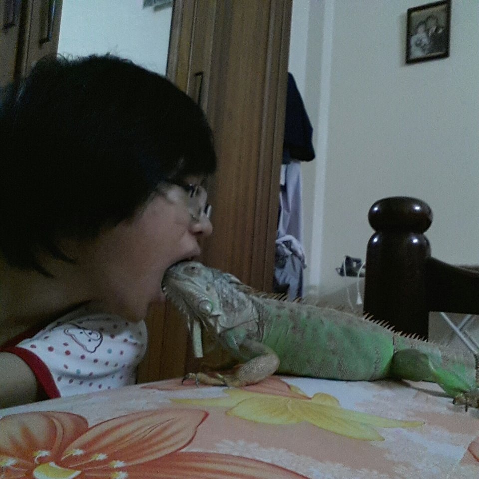 | Nhật Minh với rồng Nam Mỹ. Đặc biệt, toàn bộ các loại bò sát đang nuôi cô cho chúng sống chung với mình tại phòng riêng. |