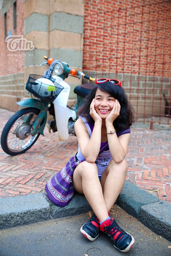 | Tùng trẻ trung bên chiếc xe cub 50. |