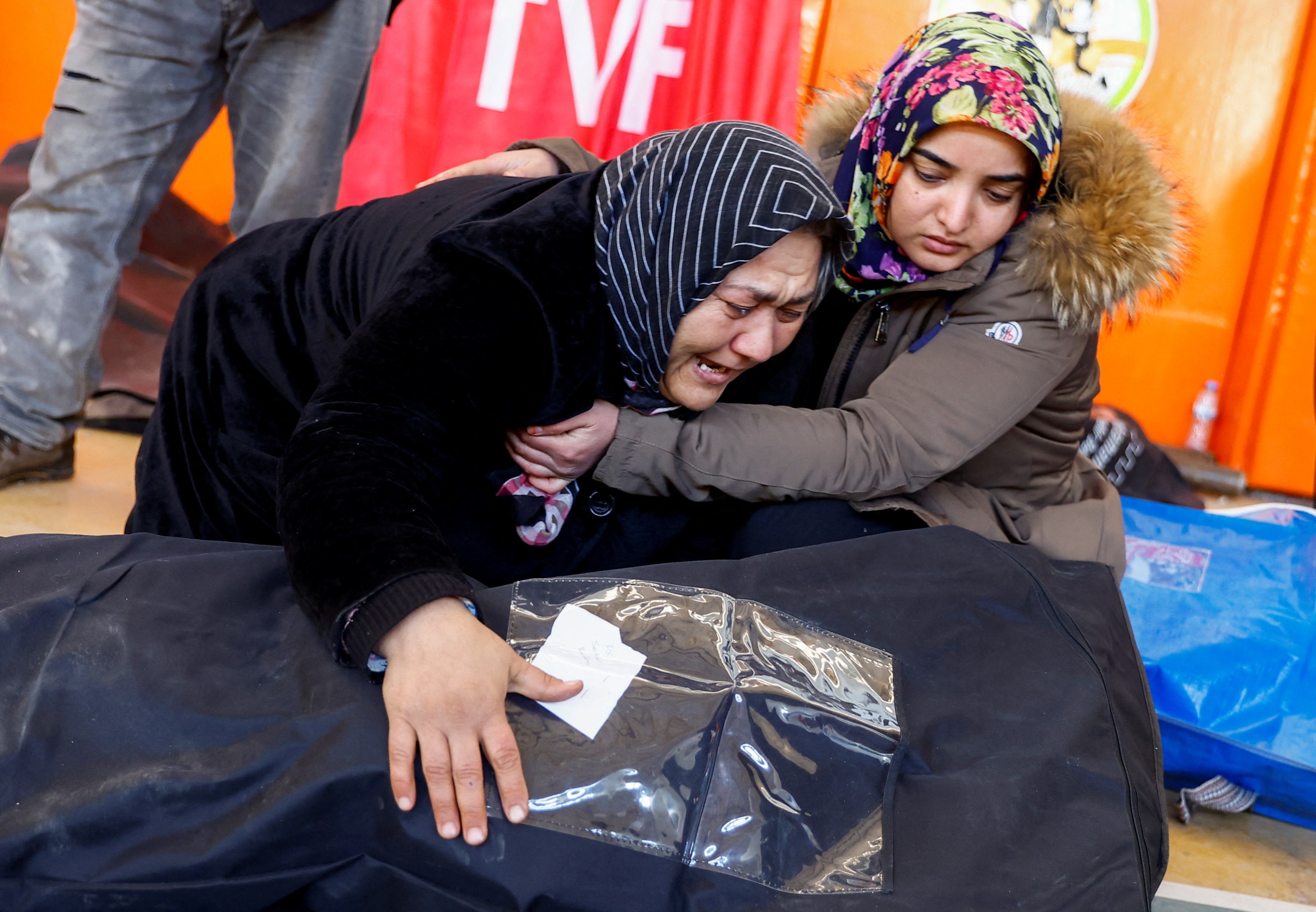 | Những phụ nữ bên đống đổ nát ở Hatay, Thổ Nhĩ Kỳ, ngày 14/2. Ảnh: Reuters. |