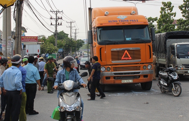 Khi vừa đến ngã tư, chị Trang bất ngờ bị xe container biển số 60C từ phía sau lao tới gây tai nạn, cuốn vào gầm và kéo lê gần 10 m.