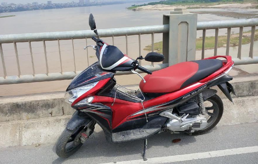 Chiếc Air Blade cô gái bỏ lại mang biển kiểm soát Hà Nội. Trong cốp xe có một số đồ dùng cá nhân cùng một tờ giấy ghi nhiều tên và số điện thoại.