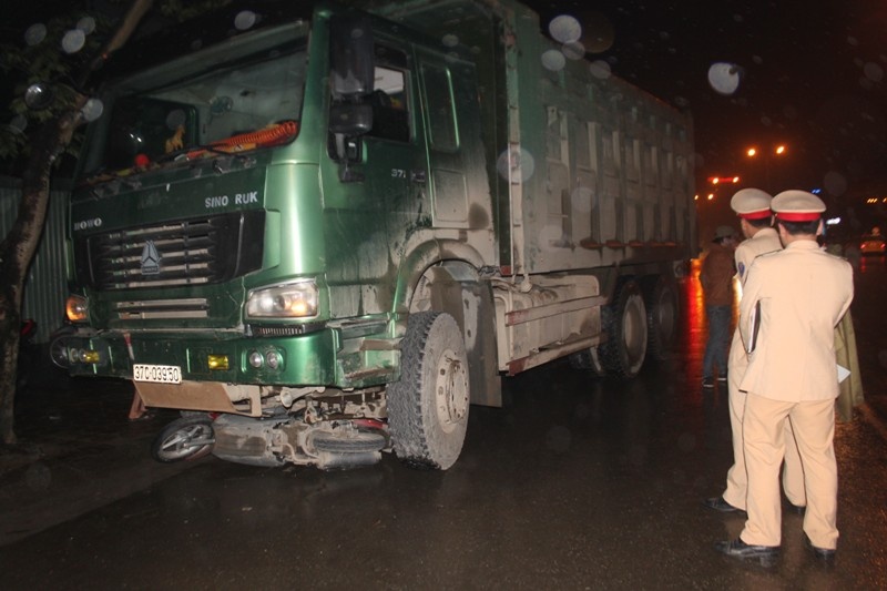 Tại hiện trường, chiếc xe cùng thi thể nạn nhân vẫn đang nằm dưới gầm xe tải. Thi thể chị Anh sau đó được mọi người đưa ra ngoài, trên người nhiều vết thương, máu chảy.