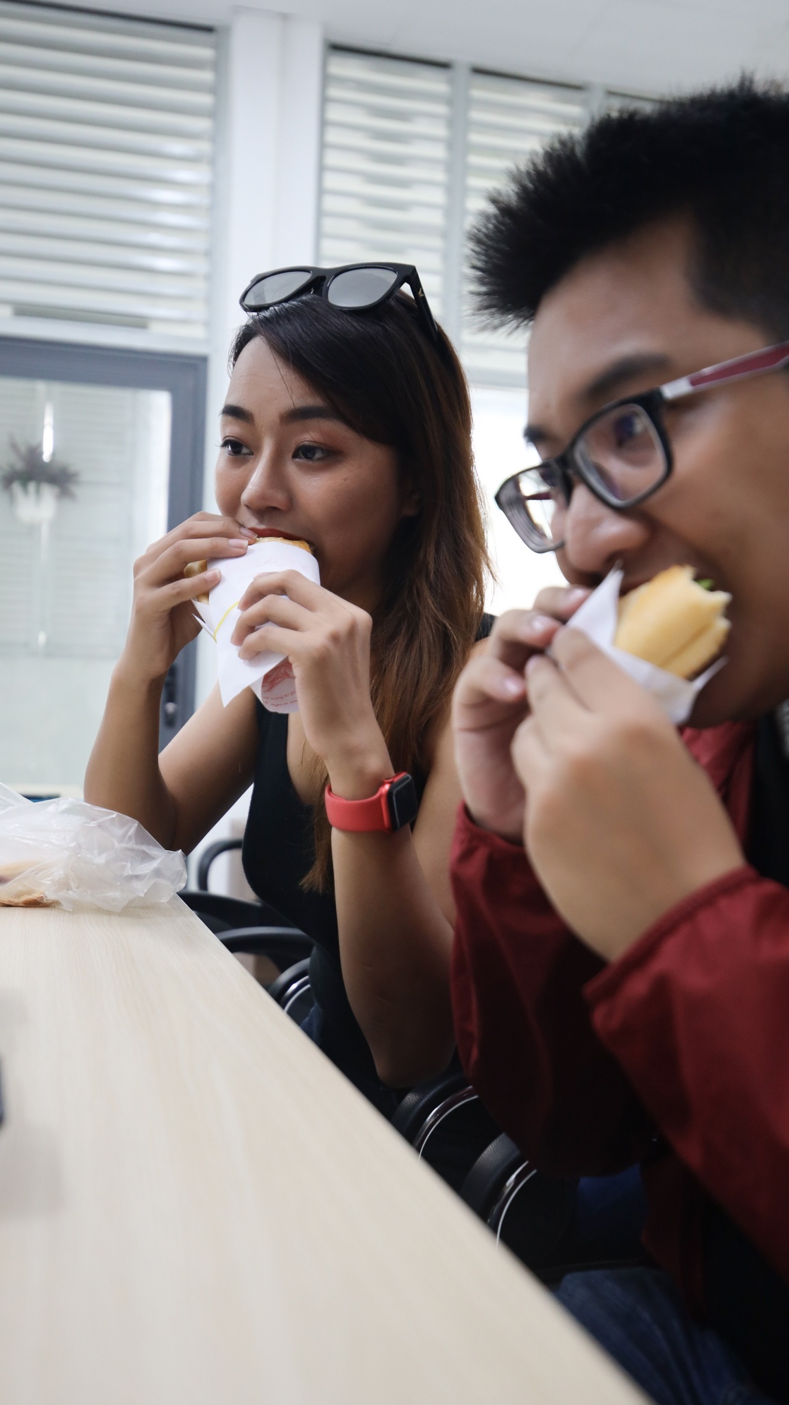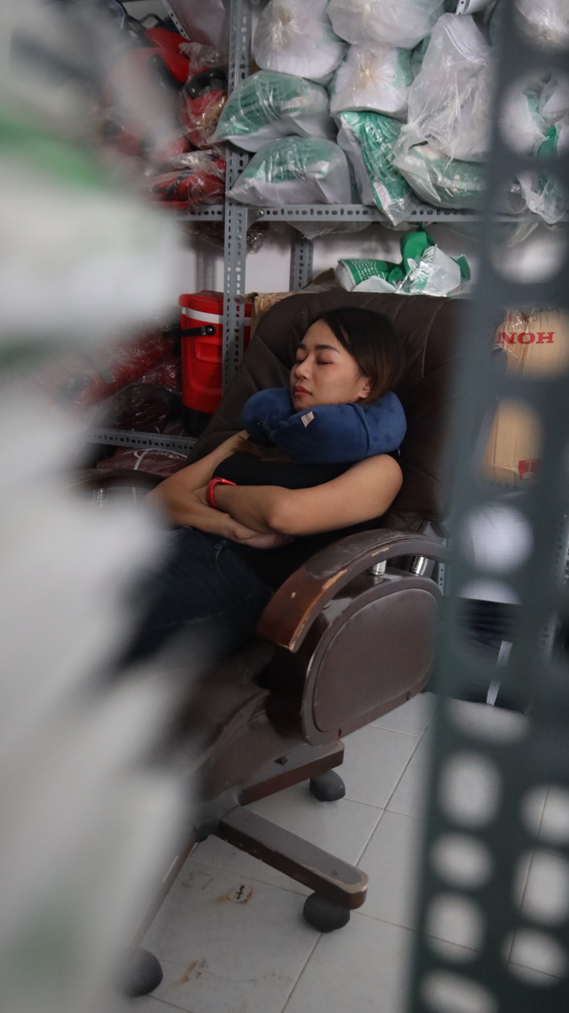 | 12h, tôi trở về công ty và tranh thủ chợp mắt tầm 30 phút. Là thành viên nữ duy nhất trong team, tôi được nhường cho chiếc ghế thoải mái nhất để ngả lưng. |