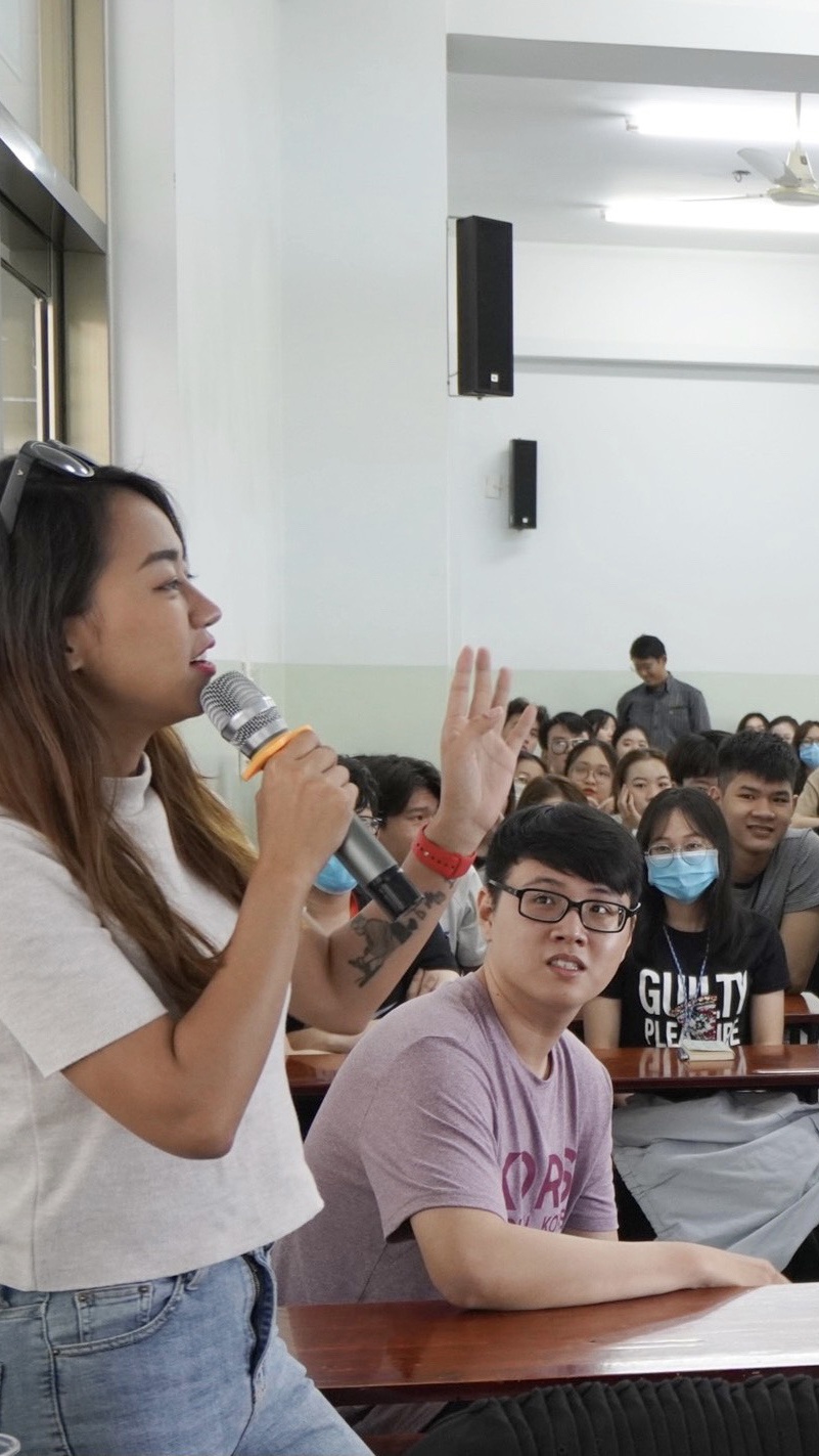 | Tôi thường được mời về các trường đại học để chia sẻ đam mê cũng như kinh nghiệm làm việc. Khi nhiều bạn thắc mắc: "Con gái chạy môtô có khó không?", tôi khẳng định luôn rất cực và mệt nhưng nếu đủ đam mê thì chẳng có gì là khó. |