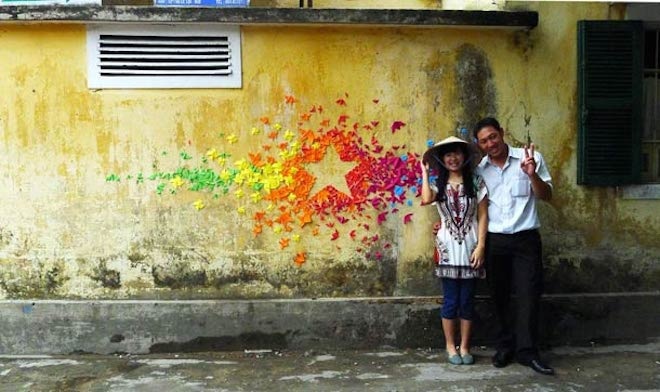 | Mới đây, cô đã đến Việt Nam và biến những bức tường cũ kỹ trở nên bắt mắt, ngập tràn sắc màu hơn. |