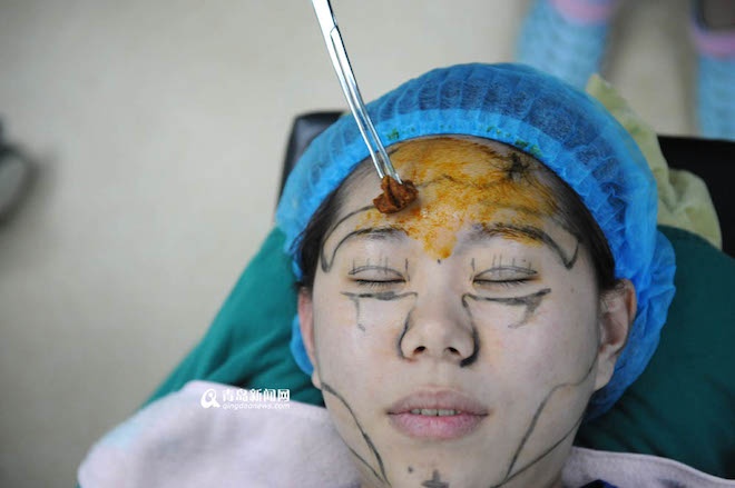 | Để có được vẻ ngoài như mong muốn, cô gái người Trung Quốc đương nhiên phải trải qua không ít đau đớn. |