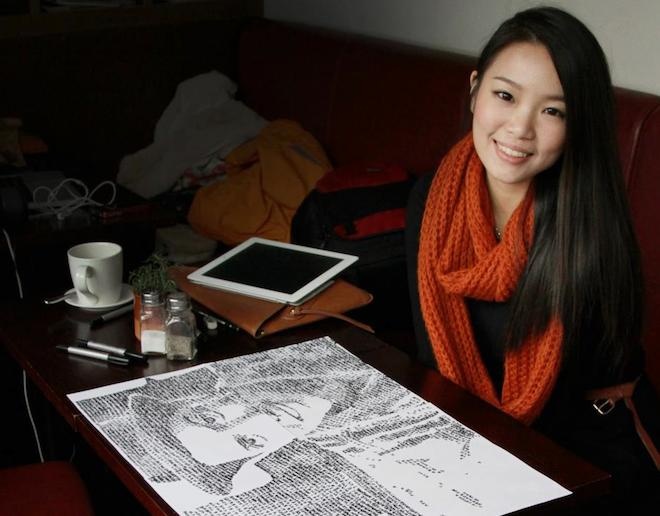 | Clip thực hiện bức chân dung này hiện khá hot trên Youtube với hơn 870.000 lượt xem. Trong ảnh là cô gái đa tài Hong Yi. |
