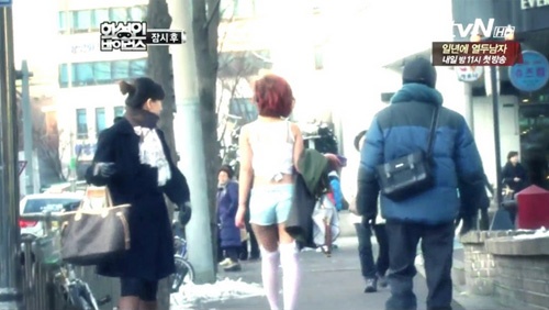 Khi xuất hiện trong chương trình "Virut người sao Hỏa", dù bên ngoài thời tiết là âm 13 độ nhưng cô gái trẻ vẫn chỉ mặc một chiếc áo mỏng hở rốn và một chiếc quần short jeans.