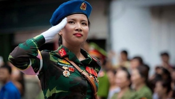 Trong khi đó, Phạm Trúc Sơn Quỳnh khiến dư luận thắc mắc về quân hàm Trung tá cô đeo khi tham gia diễu binh. Trao đổi với truyền thông, trung tướng Võ Văn Tuấn - Phó tổng tham mưu trưởng Quân đội Nhân dân Việt Nam - cho biết, quân hàm trưởng các khối diễu binh, diễu hành đeo trong Lễ kỷ niệm 70 năm Quốc khánh chỉ mang ý nghĩa tượng trưng, góp phần làm đẹp đội hình. Khoảnh khắc trang nghiêm của Sơn Quỳnh trên một diễn đàn cũng sỡ hữu hơn 25.000 lượt xem. Ảnh: Wind chia sẻ.