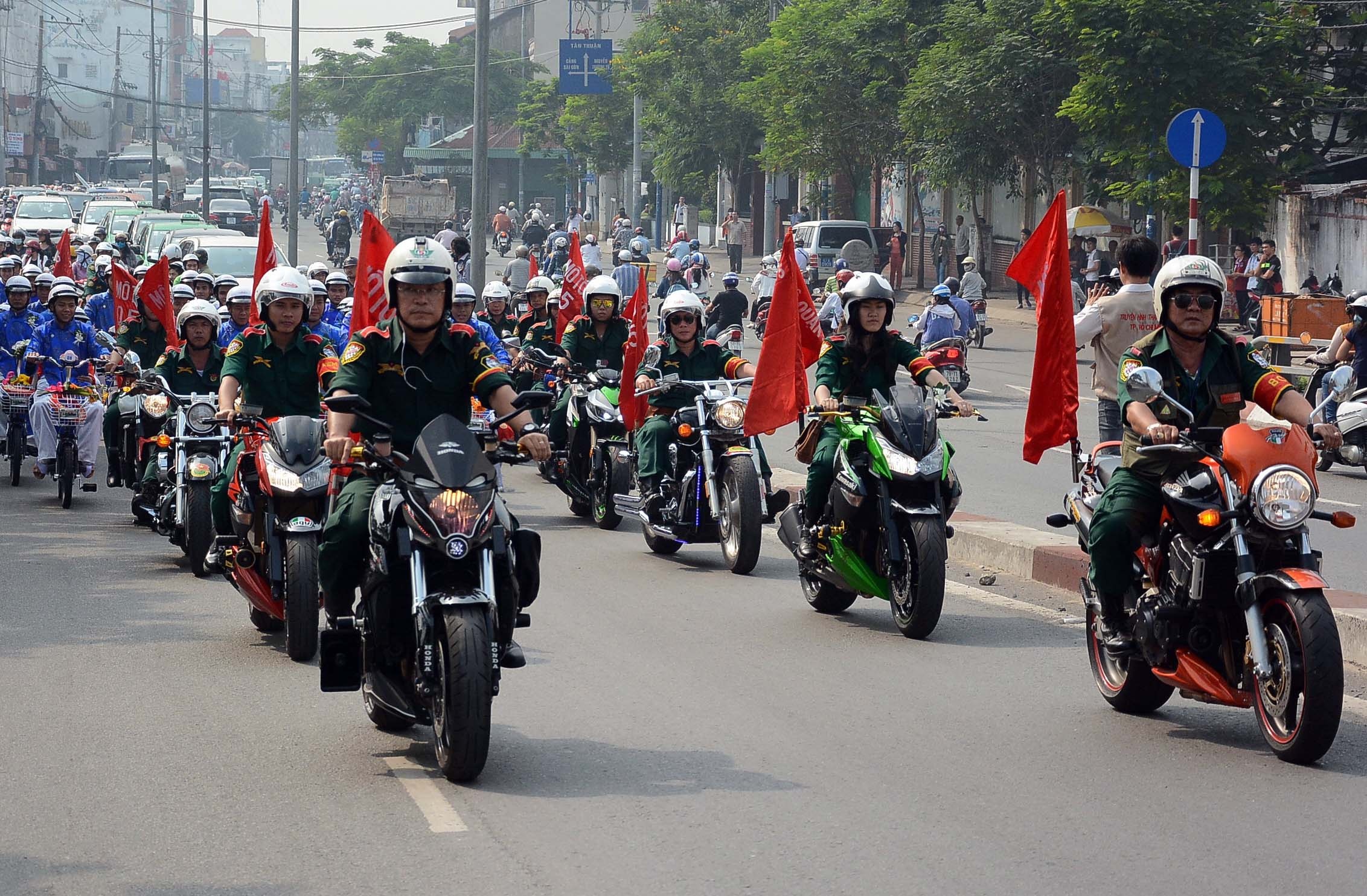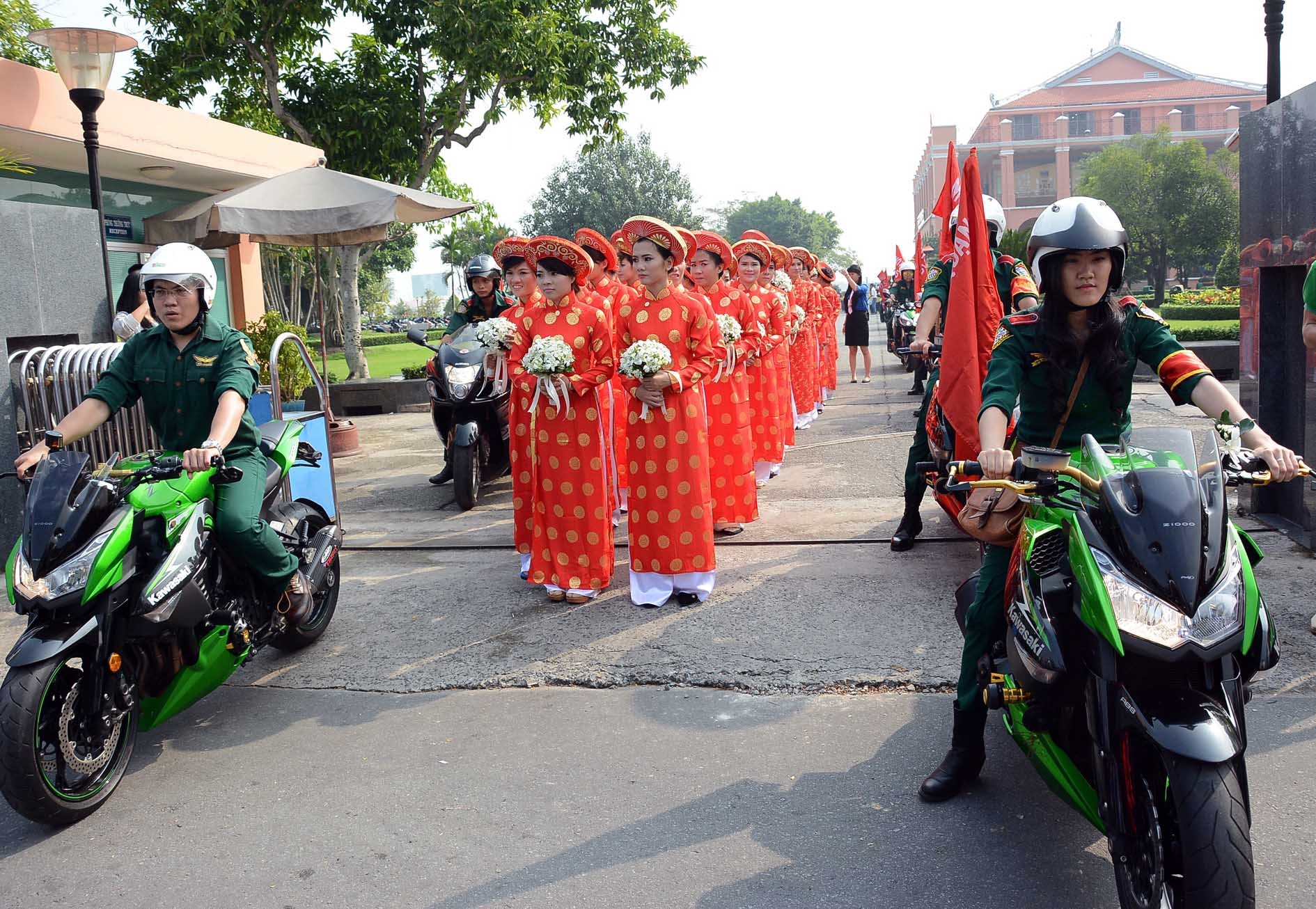 | Tại lễ cưới tập thể năm 2014 của 100 cặp đôi ở Sài Gòn, CLB Mô tô quận 5 phụ trách việc dẫn đường cho đoàn diễu hành đi đến các điểm trong chương trình. |