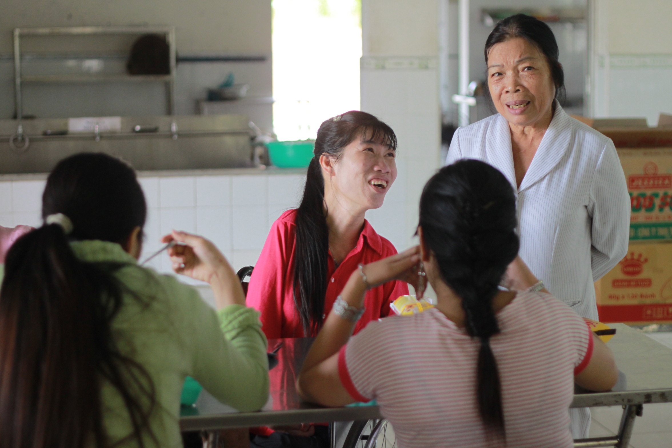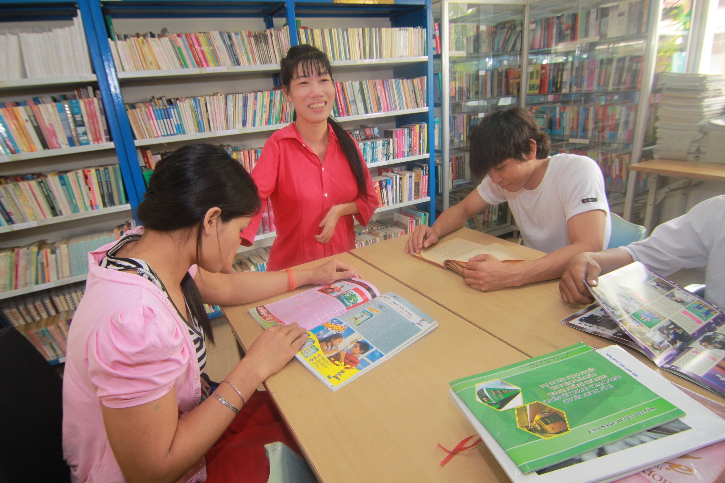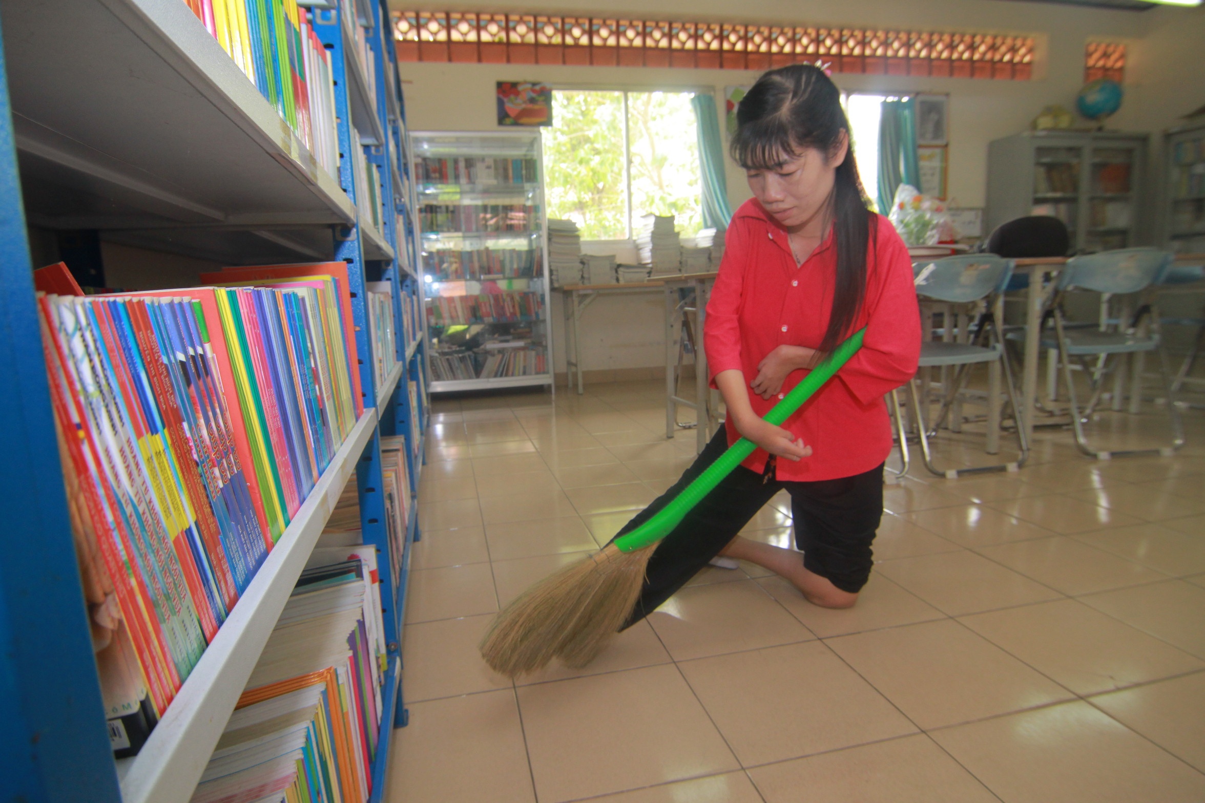 | Cô Đặng Thị Hỏi (giám đốc trung tâm) cho biết: "Nhận thấy Xậm rất có nghị lực, bất cứ khó khăn gì cũng vượt qua, là tấm gương sáng cho các em khuyết tật ở đây nên trung tâm muốn giữ lại làm nhân viên và giao cho Xậm quản lý thư viện". |