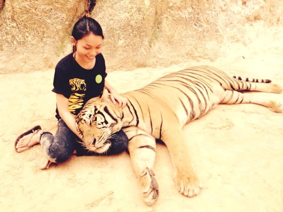 Trước khi trở thành tình nguyện viên chăm sóc hổ, Trang đã nhiều lần đặt chân trới đất nước Thái Lan nên cảm giác trong chuyến đi lần này đối với cô không quá xa lạ ngoài sự hoang dã và thanh bình tại khu nuôi động vật. Đây là một ngôi chùa có khuôn viên rộng lớn và là nơi nuôi dưỡng hơn 140 con hổ và nhiều loài thú khác.