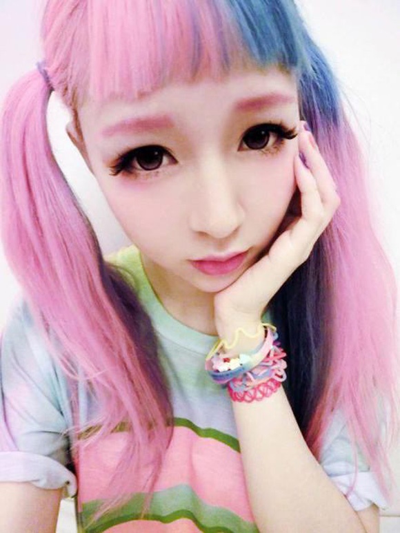 | Đặc biệt mái tóc cầu vồng thể hiện tình yêu tuyệt đối với màu yêu thích bên cạnh các sở thích khác của cô như hoạt hình, thời trang và sưu tập những phụ kiện liên quan. |