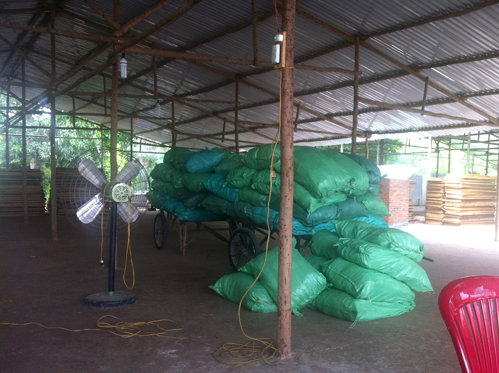 | Khu vực sản xuất có 7 đến 10 công nhân làm việc chẻ bông và thu gom bông sau khi sấy. |