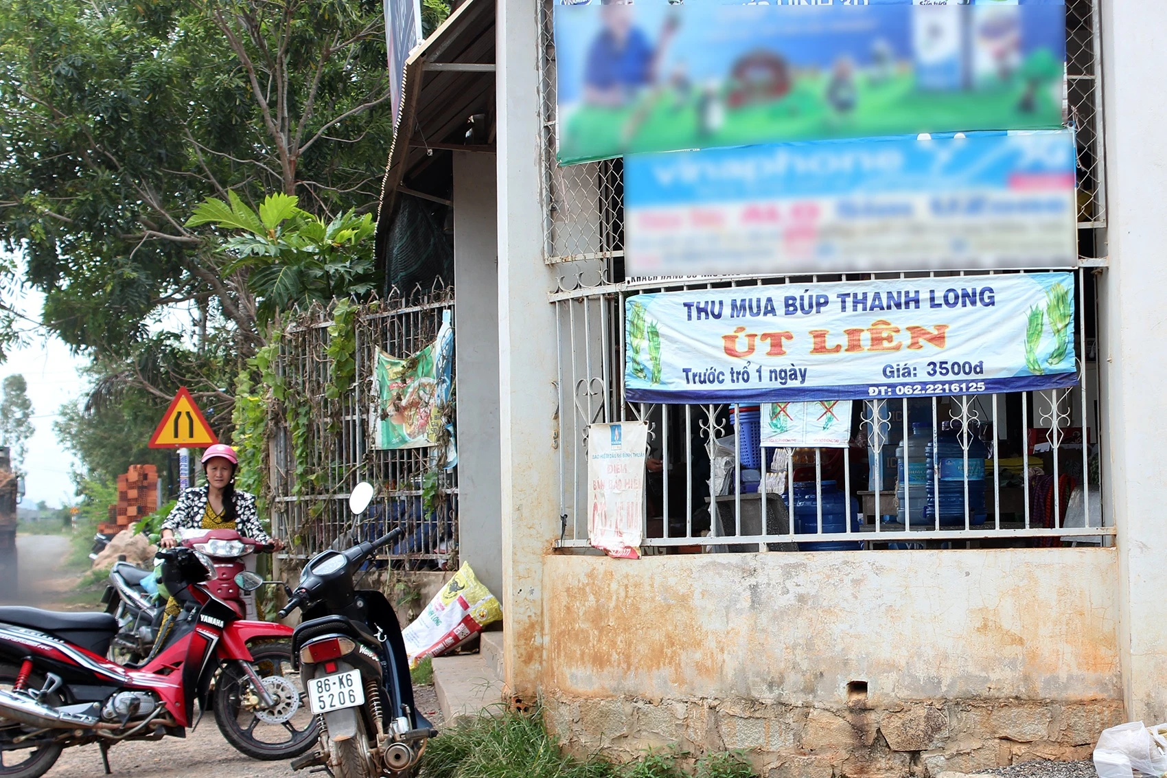 | Không ai biết rõ bông thanh long sẽ được sử dụng để làm gì, nhưng tại xã Hàm Chính, huyện Hàm Thuận Bắc, tỉnh Bình Thuận đang có khoảng 10 điểm thu mua loại này. Những điểm thu đều treo bảng ghi rõ "Thu mua búp thanh long trước trổ 1 ngày - giá 3.500 đồng/kg". Các điểm này là vệ tinh, thu mua cho cơ sở sản xuất bông thanh long Hoa Bá Vương. |