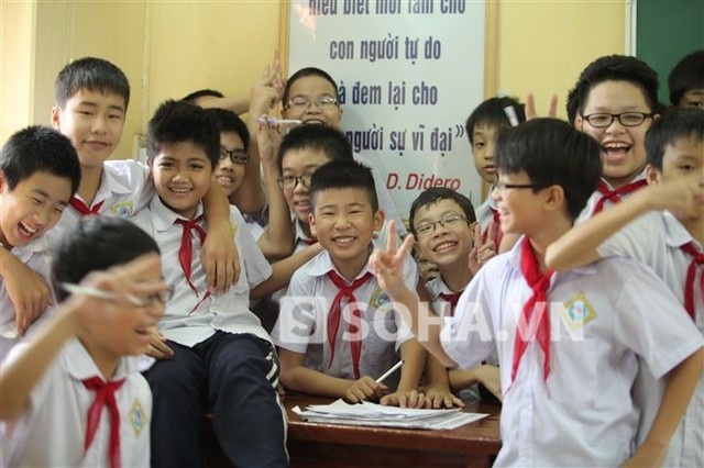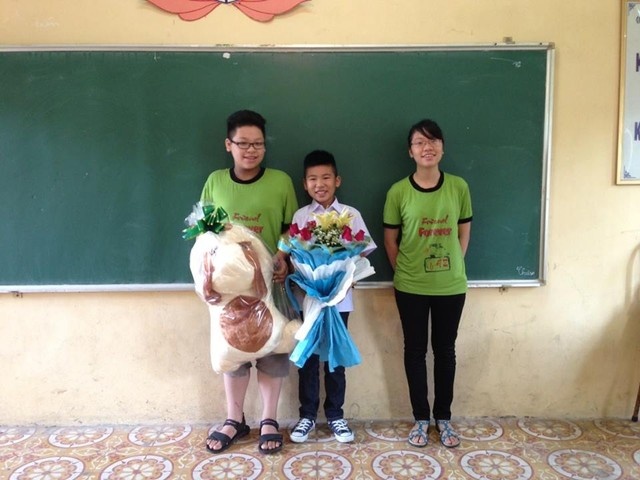 | Ngọc Duy trong "vòng vây" của các bạn cùng lớp. |